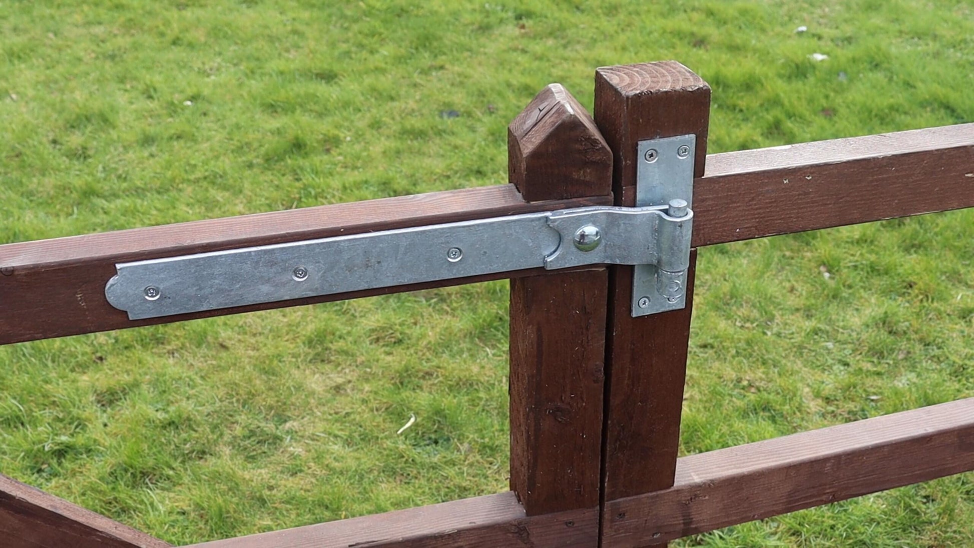 Cranked hinges keep the post flush with the door/gate.