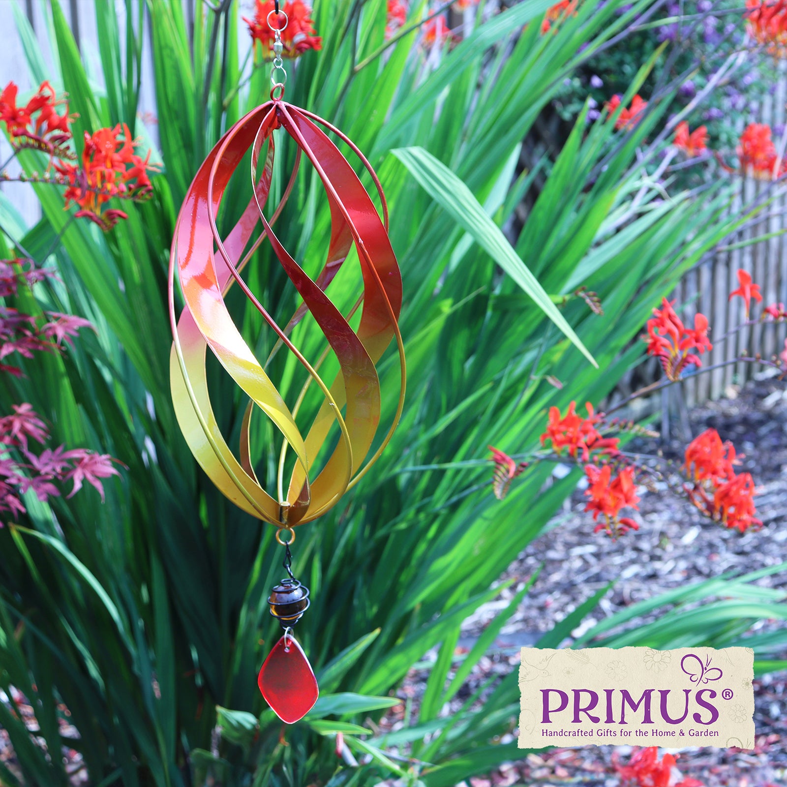 Crafted from durable mild steel with a weather-resistant black powder coat finish, the Flame Red Metal Hanging Spinner is designed to withstand outdoor conditions while maintaining its vibrant appearance. Its dynamic design allows it to spin smoothly in the wind, adding a captivating visual element to any garden or outdoor space. This spinner combines robust construction with functional artistry, making it a reliable and attractive addition to your outdoor décor.